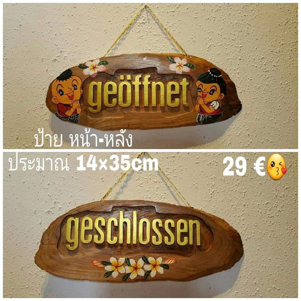 Schild aus Holzschnitzerei "geöffnet" und rücken Seite "geschlossen" Gr.14*35 cm. Nr.01 29,- Euro