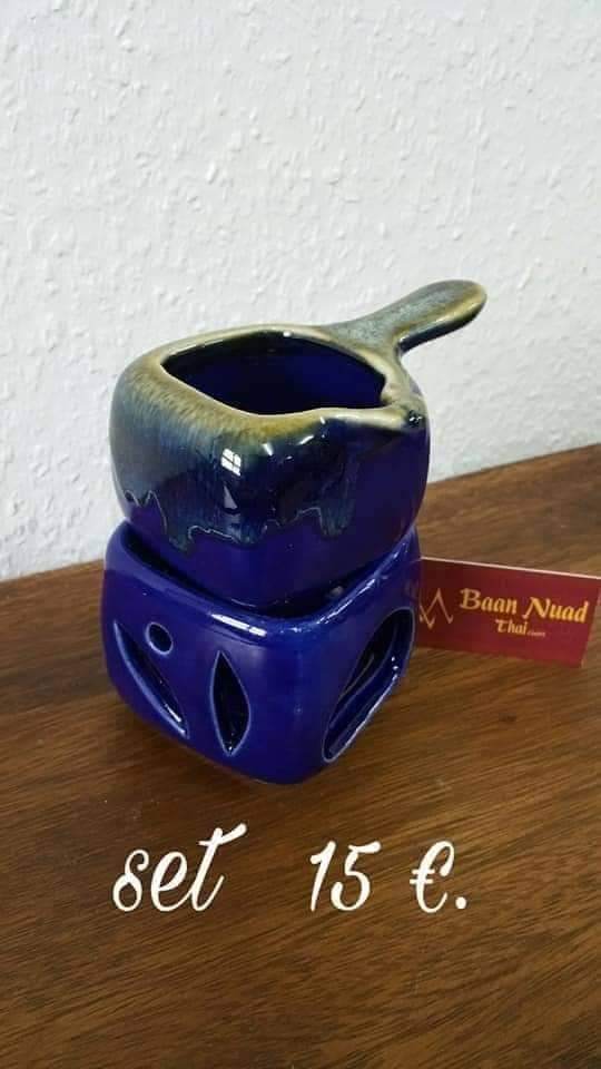 Keramik Ölwärmer Set Wärmer und Töpfer, blaue-03