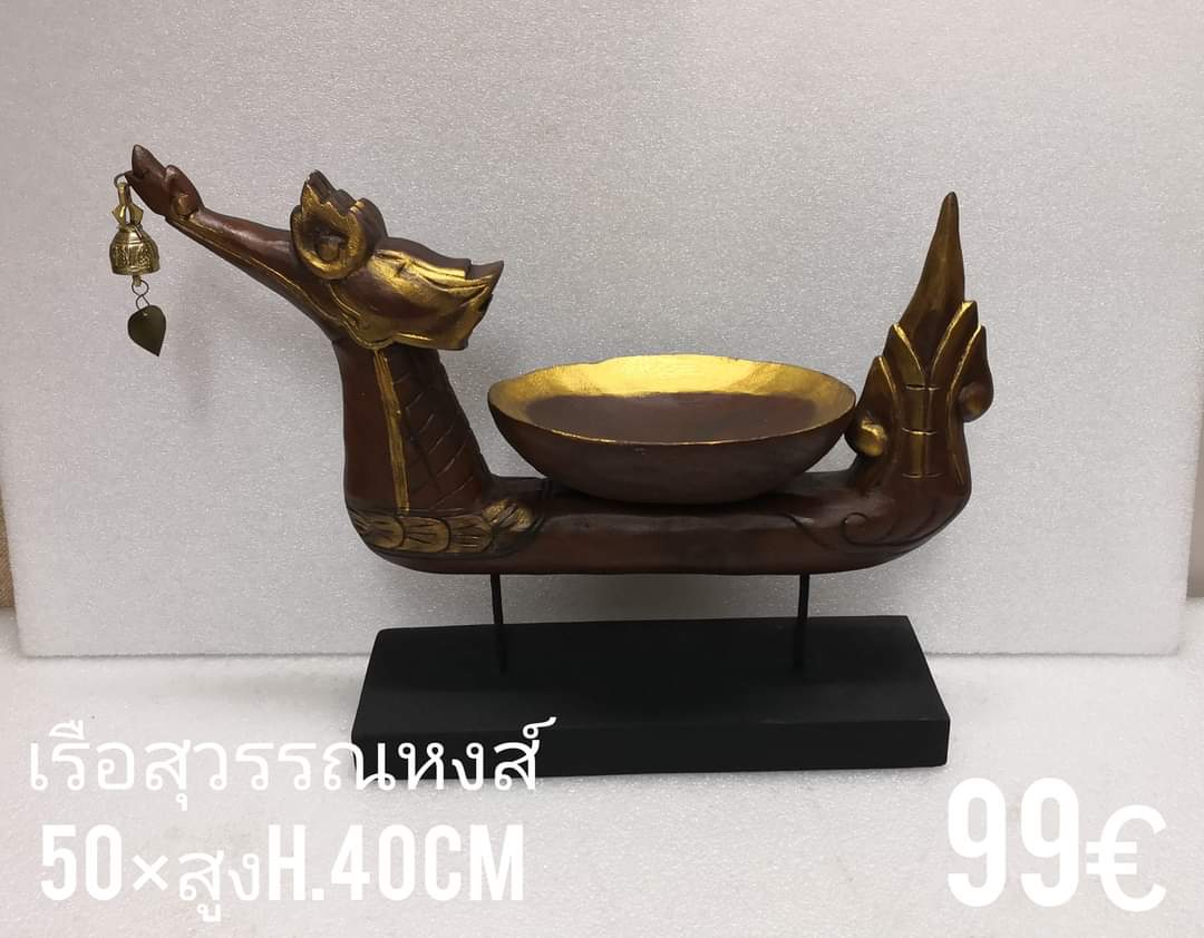 Servier-Schiff aus Holz, Gr.Lang 50 cm. Hoch 40 cm. mit runds Schale in der Mitte. 2 versch. dunkle braune Farbe 99,- Euro und goldene Farbe 119,- Euro