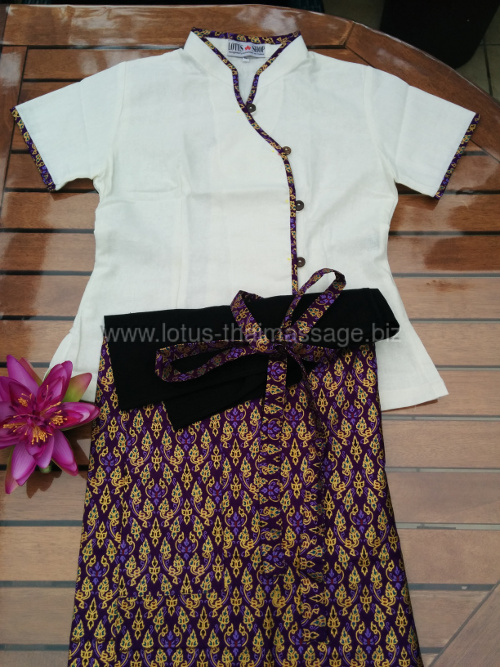 Arbeitkleidung für Masseurinnen, weiss-lila Set