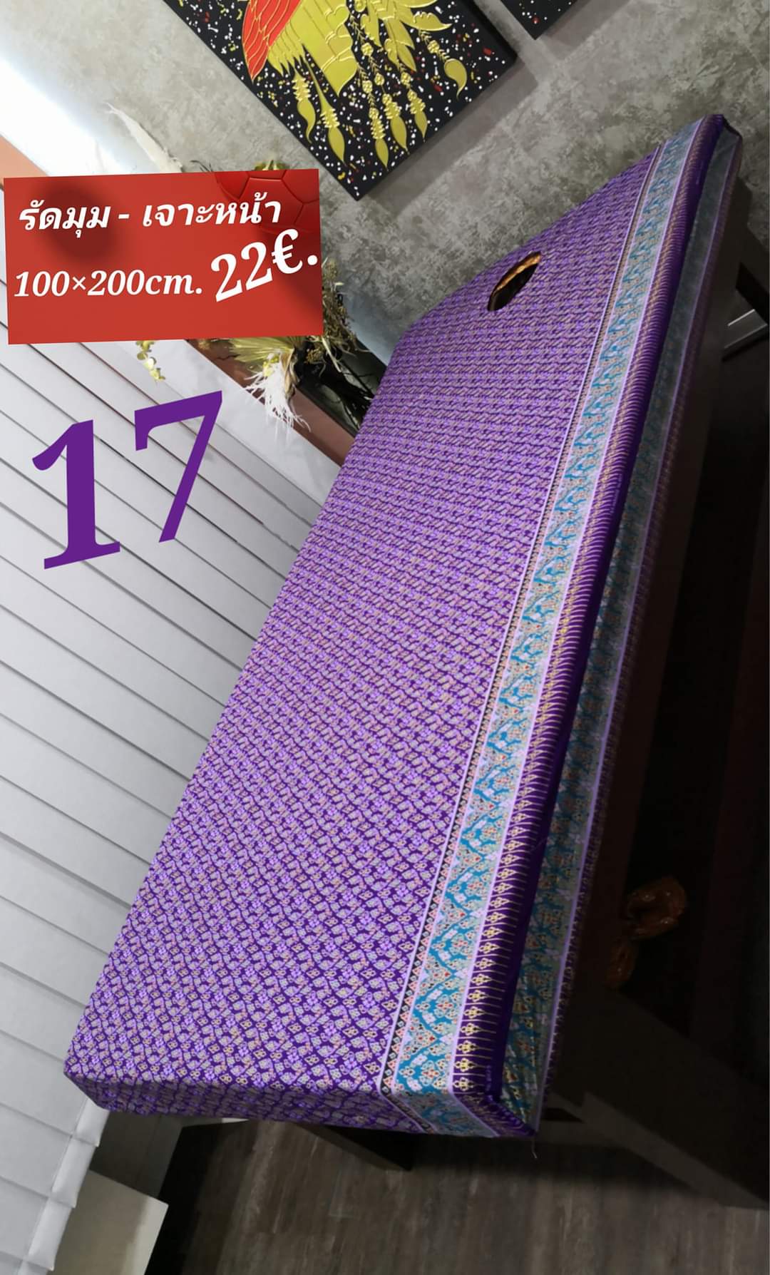 Bettdecke Thai Style Nr.17, lila Farbe, Gr.100*200*8 cm. mit Gesichtschnitte und genähte Gummi am jede Ecke. 22,-Euro/St.